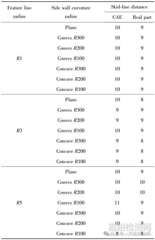 Tab.4 Skid-line distance of CAE and real sheet metal part with different radius (mm)