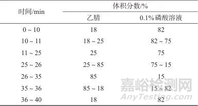 表1 流動相梯度洗脫程序