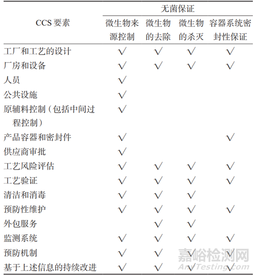 表 3 CCS 要素與無菌保證評(píng)估矩陣