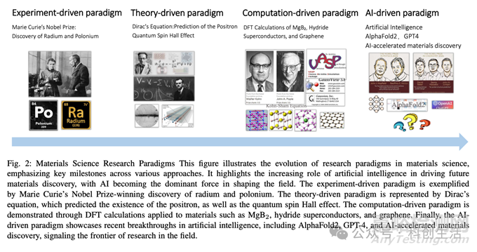 論文指出,AI在材料科學(xué)中的應(yīng)用主要體現(xiàn)在四個方面:實驗驅(qū)動、理論驅(qū)動、計算驅(qū)動和AI驅(qū)動。其中,AI驅(qū)動的方法通過學(xué)習(xí)和分析大量材料數(shù)據(jù),能夠建立材料性能與結(jié)構(gòu)之間的復(fù)雜映射關(guān)系,從而實現(xiàn)材料的高效設(shè)計和優(yōu)化。