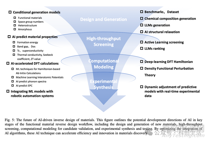 值得注意的是,論文還指出了當(dāng)前AI在材料逆向設(shè)計中面臨的挑戰(zhàn)和未來發(fā)展方向。例如,如何提高AI模型的泛化能力、如何整合多源異構(gòu)數(shù)據(jù)、如何實現(xiàn)AI與實驗的緊密結(jié)合等。同時,論文也強調(diào)了跨學(xué)科合作的重要性,認(rèn)為物理學(xué)家、材料科學(xué)家和AI專家的緊密合作將有助于推動材料逆向設(shè)計的進一步發(fā)展。