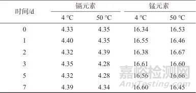 表6 長(zhǎng)期穩(wěn)定性檢驗(yàn)鎘、錳含量測(cè)定結(jié)果