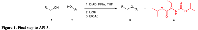 一種金尿?qū)巻窝趺福↘MO)抑制劑,正在開發(fā)中,用于治療急性胰腺炎。合成的最后一個化學(xué)鍵形成階段涉及三菱反應(yīng)耦合中間體1和2,然后將遠(yuǎn)程酯官能團(tuán)原位水解為羧酸,然后通過結(jié)晶分離(圖1)。在對用于生產(chǎn)原料藥3的合成途徑的計算機(jī)分析中,在臨床研究中首次確定了合理的過程雜質(zhì)4具有潛在的誘變性。