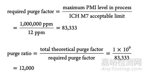 使用12ppm的TTC,需要83,333的清除系數(shù),這與清除計算一起,對應(yīng)于12,000的清除率;遠(yuǎn)遠(yuǎn)超過了建議的≥1000,以證明ICH M7選項4控制策略是合理的,而無需進(jìn)一步分析數(shù)據(jù)。除了現(xiàn)有的批次數(shù)據(jù)支持在API中測量的水平始終低于5ppm外,不再需要對藥物物質(zhì)進(jìn)行28次常規(guī)測試。