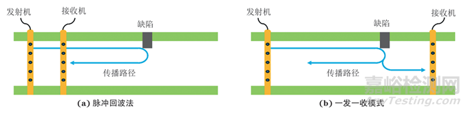 圖4 脈沖回波法和一發(fā)一收模式原理示意