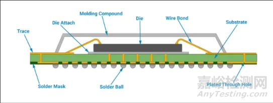 Substrate構(gòu)成了芯片封裝的基礎(chǔ)結(jié)構(gòu),類(lèi)似于建筑的地基。隨后,晶粒Die被精確地放置在Substrate的一側(cè),這一過(guò)程被稱(chēng)為Die Attach。晶粒與Substrate之間通過(guò)精細(xì)的引線鍵合技術(shù)實(shí)現(xiàn)連接。為確保芯片的穩(wěn)定性和安全性,會(huì)在其上安裝一個(gè)金屬保護(hù)蓋,這一過(guò)程稱(chēng)為L(zhǎng)id Attach。此保護(hù)蓋通常采用散熱性能優(yōu)異的合金制成。在另一側(cè),芯片上會(huì)安裝錫球,這一過(guò)程被稱(chēng)為Solder Ball Mount。隨后,通過(guò)先進(jìn)的回流焊工藝,確保錫球與SUB之間形成穩(wěn)固的連接。至此,芯片封裝的基本結(jié)構(gòu)已完成。