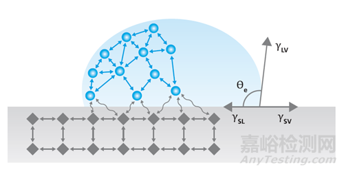 γsv是固體表面自由能,γsl是固體和液體之間的界面張力,γlv是液體的表面張力,θy是接觸角。當確定固體表面自由能時,需要知道或測量方程的右側(cè)。表面張力和接觸角很容易測量,但液體和固體之間的界面張力測試很難。