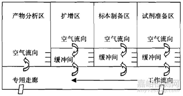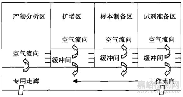 圖A 緩沖間為負壓的理想PCR檢驗實驗室設(shè)置模式