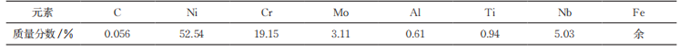 試驗材料為IN718 高溫合金,化學(xué)成分如表1所示,固相線和液相線溫度分別約為1270,1349 ℃。