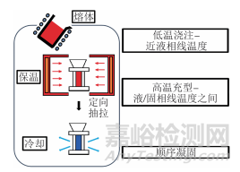 熱控凝固是將模殼溫度提高到合金固相線和液相線溫度之間以提高合金熔體充型能力的一種鑄造工藝。為了實現(xiàn)充型和凝固的協(xié)同控制,研究者控制凝固界面前沿溫度梯度和晶粒生長速率的比值 以獲得等軸晶生長條件,并將鑄件從熱區(qū)向冷區(qū)移動以獲得順序充填。熱控凝固過程中的凝固界面前沿溫度梯度與晶粒生長速率的比值僅限于等軸晶生長的較窄范圍內(nèi),凝固過程的控制非常復(fù)雜。由于之前研究的熱熔凝固工藝中模殼上下區(qū)保溫溫度不一致,所得鑄件組織嚴(yán)重不均勻,同時熱控凝固工藝參數(shù)對組織和缺陷的影響規(guī)律缺乏進(jìn)一步研究。為此,作者基于熱控凝固工藝的基本原理,借鑒定向凝固方法,提出了“低溫澆注、高溫充型、順序凝固”的新型熱控凝固工藝,研究了模殼溫度、抽拉速度等工藝參數(shù)對IN718高溫合金凝固組織的影響規(guī)律,獲得優(yōu)化的工藝參數(shù),并進(jìn)行復(fù)雜薄壁特征 結(jié)構(gòu)件的成形試驗,以期為航空發(fā)動機關(guān)鍵構(gòu)件精密鑄造新技術(shù)的研發(fā)提供理論指導(dǎo)和工藝參考。