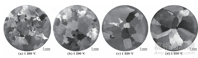 圖3 不同模殼溫度下IN718高溫合金試樣中部的晶粒形貌(抽拉速度24mm·min-1)