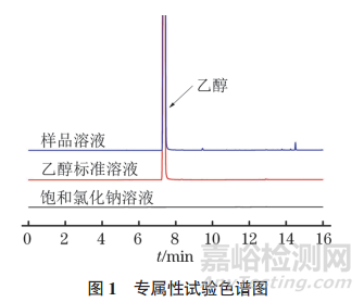 由圖1可知,飽和氯化鈉溶液對乙醇測定無干擾,且樣品中共存成分與乙醇能夠完全分離,表明本方法具有良好的專屬性。