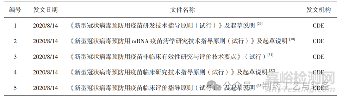 表1 國內mRNA疫苗相關技術監(jiān)管文件