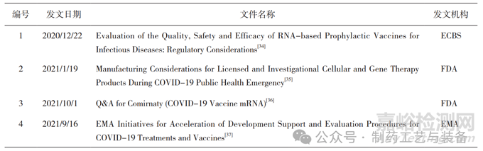 表2 國外mRNA疫苗相關技術監(jiān)管文件