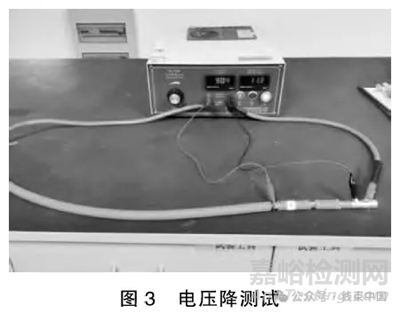 壓接,參考QC/T 29106—2014 《汽車電線束技術(shù)條件》[1]中4.2.6 電壓降實驗要求與GB/T 20234.1—2015《電動汽車傳導(dǎo)充電用連接裝置第 1 部分通用要求》測量溫升實驗要求進行驗證,過程如圖3、圖4 所示,獲得數(shù)據(jù)如表1 所示。