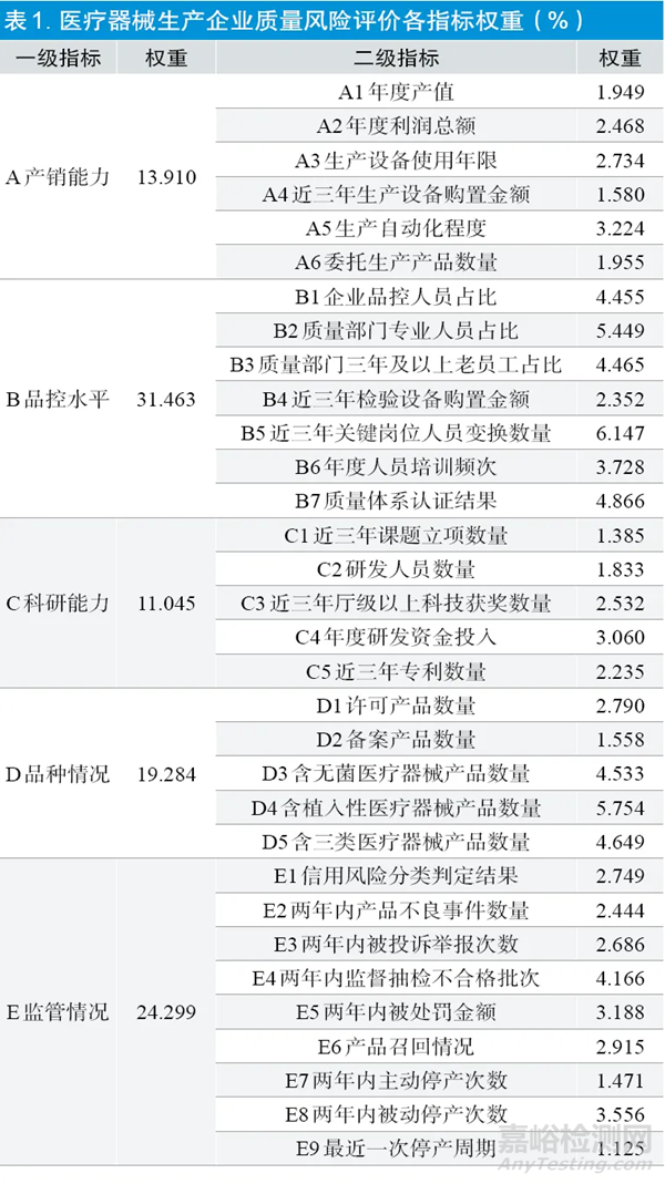 2.4 醫(yī)療器械生產(chǎn)企業(yè)質(zhì)量風(fēng)險(xiǎn)評(píng)價(jià)指標(biāo)框架的檢驗(yàn)