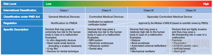 日本獨(dú)立行政法人醫(yī)藥品與醫(yī)療器械綜合機(jī)構(gòu)局(Pharmaceuticals and Medical Devices Agency, PMDA)是一個(gè)獨(dú)立的行政機(jī)構(gòu),其與厚生勞動(dòng)省合作,以確保醫(yī)療器械的安全和質(zhì)量;PMDA協(xié)助MHLW醫(yī)療器械監(jiān)管政策實(shí)施的職責(zé)包括:1)醫(yī)療器械審批審核,2)QMS/GLP/GCP檢查,3)不良事件報(bào)告的收集和分析。
