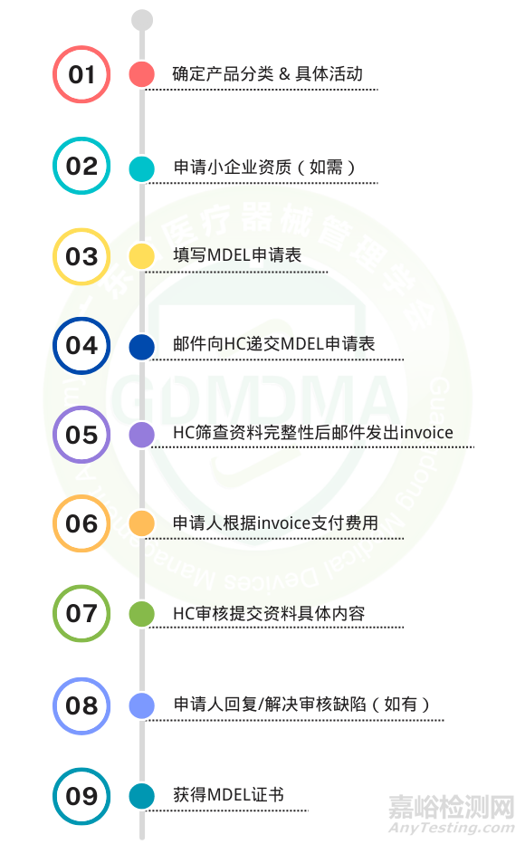 相關(guān)程序文件:申請(qǐng)中或獲得MDEL證書(shū)后,HC均有可能要求檢查申請(qǐng)表中聲明的程序文件,如沒(méi)有,會(huì)被認(rèn)為是虛假聲明,HC直接拒絕申請(qǐng)或吊銷MDEL證書(shū)。因此,申請(qǐng)人務(wù)必確保企業(yè)有申請(qǐng)表中要求的書(shū)面程序文件,可隨時(shí)供官方檢查。