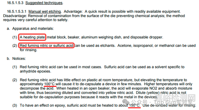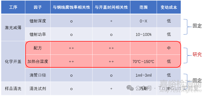 在發(fā)煙硝酸中加入濃硫酸可以抑制硝酸對銅的腐蝕,這種開蓋方法被業(yè)界普遍應(yīng)用。而各家實(shí)驗(yàn)室的配方均對外保密,我們獲得的配方可能并不是一個最優(yōu)配方,因此需要進(jìn)行研究找到一個最優(yōu)配方。