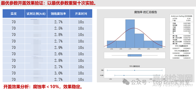 驗(yàn)證:對最優(yōu)的配方重復(fù)10次試驗(yàn),驗(yàn)證效果。