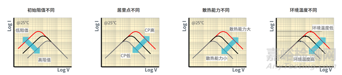 其伏安特性,也取決于其散熱情況和環(huán)境溫度,如下圖所示: