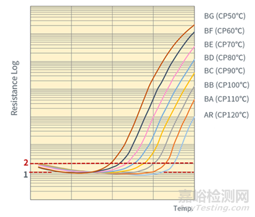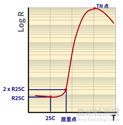 環(huán)境溫度超過(guò)居里點(diǎn)后,若仍然持續(xù)上升,PTC將失去正的溫度特性,阻值降低。阻值開(kāi)始下降的點(diǎn)被稱為TN點(diǎn)。