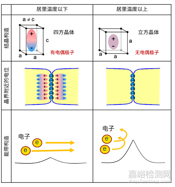 在居里溫度前后,晶體結(jié)會(huì)構(gòu)發(fā)生改變。