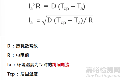 同一元件的D和R相同,將Ia與環(huán)境溫度為25°C時(shí)的跳閘電流相比,