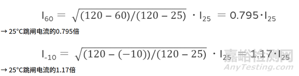 常常根據(jù)這個(gè)值來(lái)計(jì)算其它溫度下的跳閘電流。其計(jì)算步驟如下: