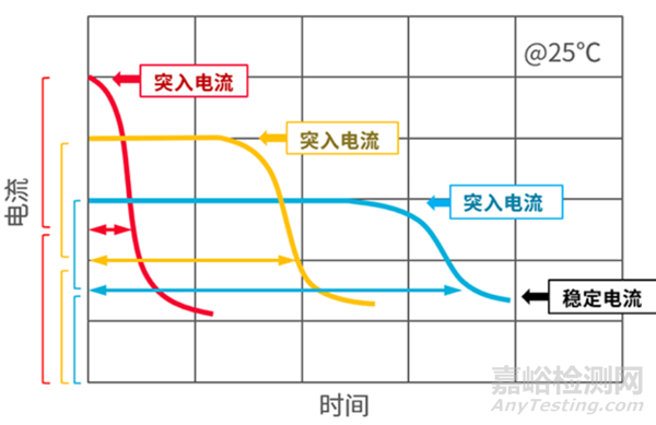 動(dòng)作時(shí)間,是指突入電流降至1/2所花費(fèi)的時(shí)間,如下圖所示。
