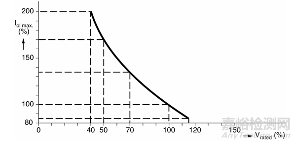 從圖中可以看出,低于額定電壓時(shí),最大過(guò)載電流越大。