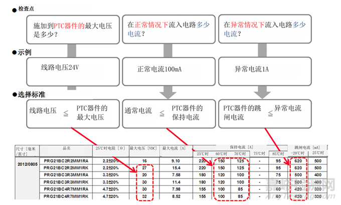 另外,如果保持電流不符合正常電流值,則可以并聯(lián)使用2個(gè)PTC器件來(lái)解決。
