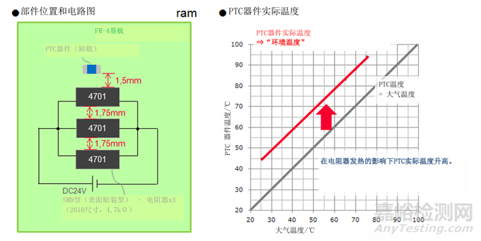 在使用時(shí)要注意,PTC周圍常常有熱源,這就導(dǎo)致PTC的器件溫度高于大氣溫度,在這樣的情況下,我們可以將“實(shí)際PTC溫度”視為“環(huán)境溫度”。