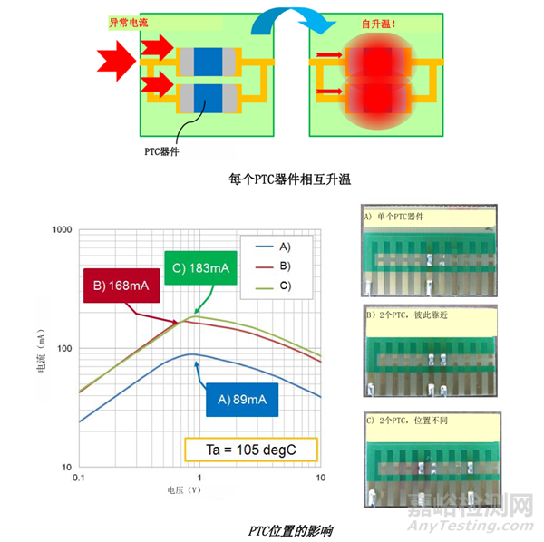 但是要注意,PTC器件之間要保持一定的距離,否則,并聯(lián)的2個(gè)PTC的等效保持電流將小于單個(gè)PTC保持電流的2倍。