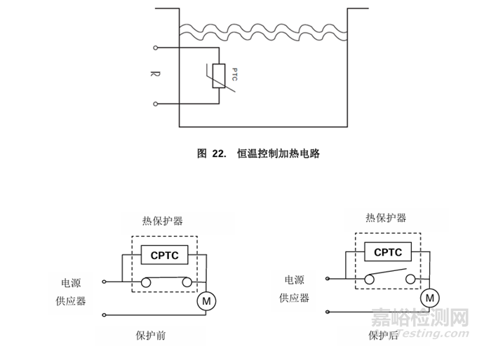 PTC 較多應(yīng)用于電源電路中的過(guò)流保護(hù),有保險(xiǎn)絲的作用。