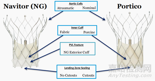 Navitor™ TAVI系統(tǒng)擁有獨(dú)特的NaviSeal™織物袖帶設(shè)計(jì),可以減少或消除瓣膜周?chē)难夯亓?,即瓣周漏(PVL),這是TAVI術(shù)后常見(jiàn)的并發(fā)癥。Navitor與雅培的上一代TAVI——Portico非常像,可以說(shuō)是在Portico基礎(chǔ)上的升級(jí)版。下圖是Navitor克服了Portico的不足,實(shí)現(xiàn)了升級(jí)。