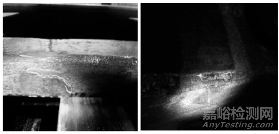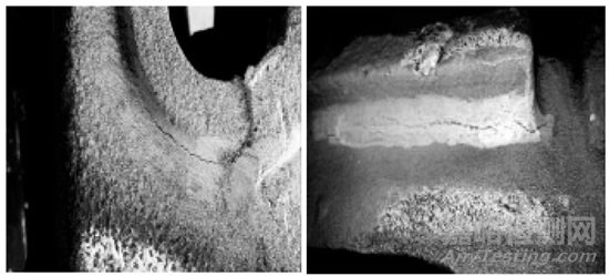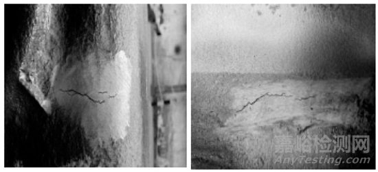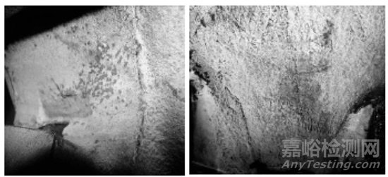 (2)關(guān)鍵部位疲勞裂紋磁痕顯示