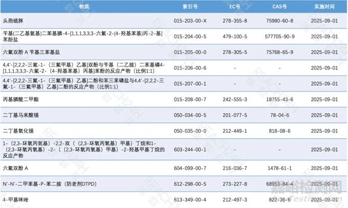 此外,新增CMR物質(zhì)的限制要求將于2025年9月1日起實(shí)施,與歐盟CLP法規(guī)修訂后的CMR分類的申請(qǐng)日期一致,其余條例則將在歐盟官方公報(bào)發(fā)布該法規(guī)之日起的第20天開始生效。