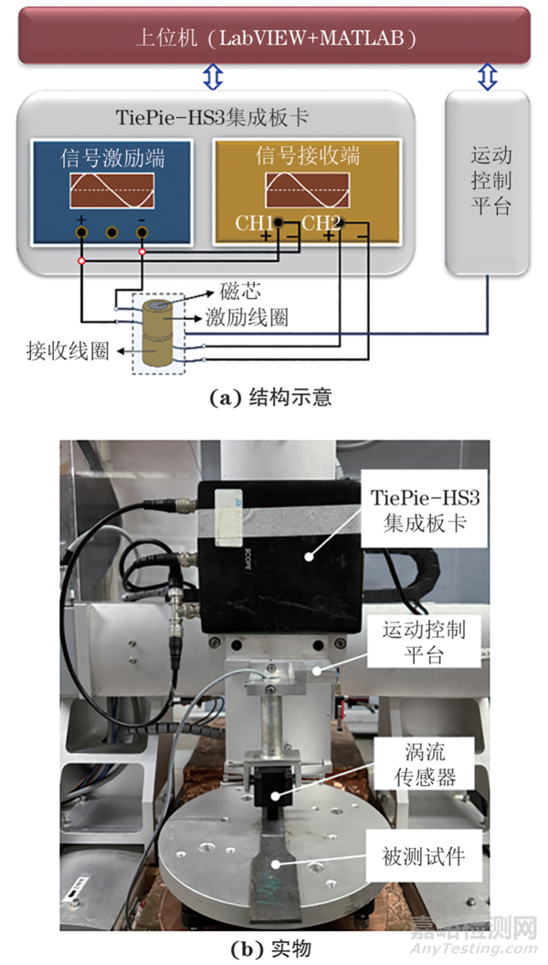 圖1 渦流檢測系統(tǒng)結構示意及實物