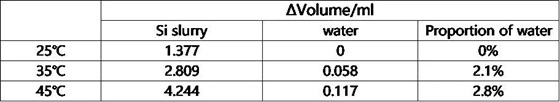 表2.不同溫度去離子水&硅基漿料的體積變化量