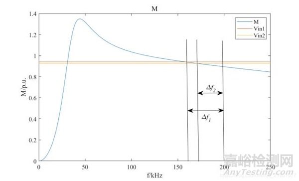 如上圖所示,當(dāng)輸入電壓較高時(shí),Vin2 > Vin1,對(duì)應(yīng)的滿載頻率f2 > f1,Δ f2 < Δ f1,則母線電壓高時(shí),輸出電壓下跌小。