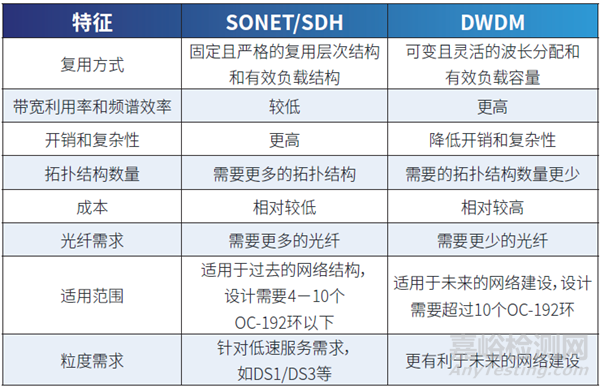圖3:SONET/同步數(shù)字體系(SDH)與DWDM對比。(來源:QSFPTEK)