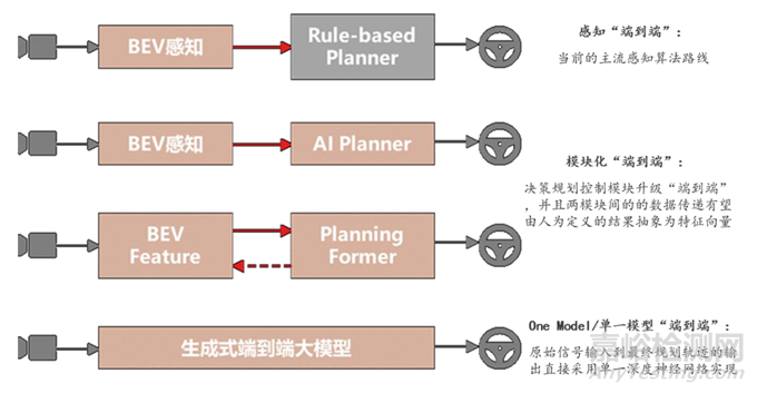 圖5:端到端自動駕駛架構(gòu)演進示意圖。(來源:辰韜資本《端到端自動駕駛行業(yè)研究報告》,信達證券研發(fā)中心)
