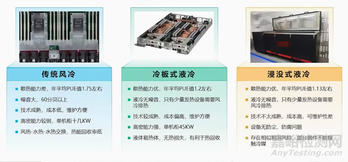 圖7:不同冷卻技術(shù)對比——電信運營商現(xiàn)階段主要推進冷板式液冷與單相浸沒式液冷兩種技術(shù)路線。