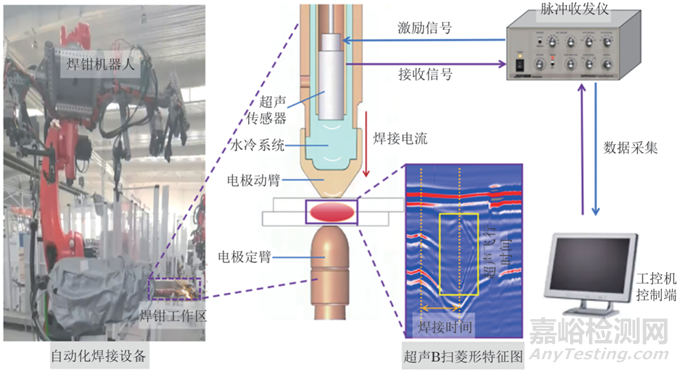但研究發(fā)現(xiàn),紅外輻射難以對焊核內(nèi)部溫度進(jìn)行直接監(jiān)測,利用傳感器采集焊接參數(shù)的監(jiān)測方法難以直接反映熔核質(zhì)量的檢測信息,渦流熱成像方法較難識別焊點內(nèi)部缺陷,X射線對人體有害且難以實現(xiàn)原位監(jiān)測。焊后超聲檢測因操作便捷而獲得廣泛應(yīng)用,但點焊質(zhì)量在線超聲檢測的研究較少。