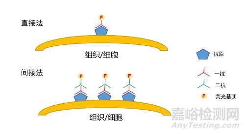 ● 間接法:間接法則是先用未標(biāo)記的一抗與抗原結(jié)合,再用標(biāo)記有熒光染料的二抗與一抗結(jié)合。這種方法的靈敏度更高,因為二抗可以放大熒光信號,但操作步驟相對較多。