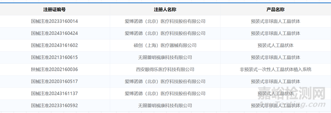 已獲批的國產(chǎn)預(yù)裝式人工晶狀體系統(tǒng)