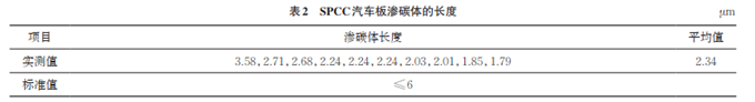 同樣切取另一塊SPCC試樣,試樣長(zhǎng)度為20mm,寬度為5mm。在光學(xué)顯微鏡1000倍下觀察試樣,結(jié)果如圖7所示,采集10個(gè)視場(chǎng)圖片。記錄每個(gè)圖片中最大滲碳體的長(zhǎng)度,結(jié)果如表2所示。由表2可知:該滲碳體符合標(biāo)準(zhǔn)要求。單個(gè)滲碳體的尺寸是深沖用鋼的重要參數(shù),不允許有大尺寸的滲碳體存在。一般滲碳體組織較硬,脆性大,若滲碳體尺寸大,在進(jìn)行沖壓等工藝時(shí)滲碳體不易變形,易在滲碳體邊部尖角部位萌生微裂紋,從而影響汽車(chē)板的加工及使用。
