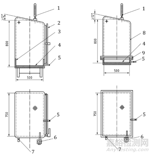 試驗(yàn)設(shè)備推薦試驗(yàn)箱容積(300±10)dm³,典型試驗(yàn)箱分門式和罩式兩種,基本同圖2。