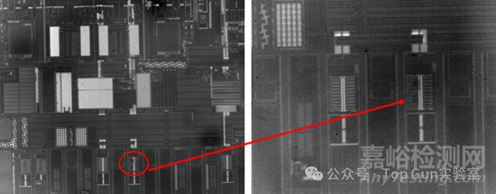 X-ray能夠穿透芯片封裝,對芯片內(nèi)部結(jié)構(gòu)進行成像。可以查看芯片內(nèi)部的金屬連線、焊點等結(jié)構(gòu)是否存在異常。例如,它可以檢測到內(nèi)部金屬連線是否有斷裂后搭接造成短路的情況。